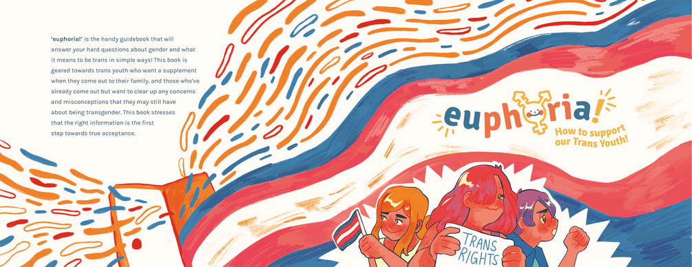 'Euphoria!' is a Filipino-centric guidebook that will answer your hard questions about gender and what it means to be trans in simple ways! This book is geared towards trans youth who want a supplement when they come out to their family, and those who’ve already come out but want to clear up any concerns and misconceptions that they may still have about being transgender.